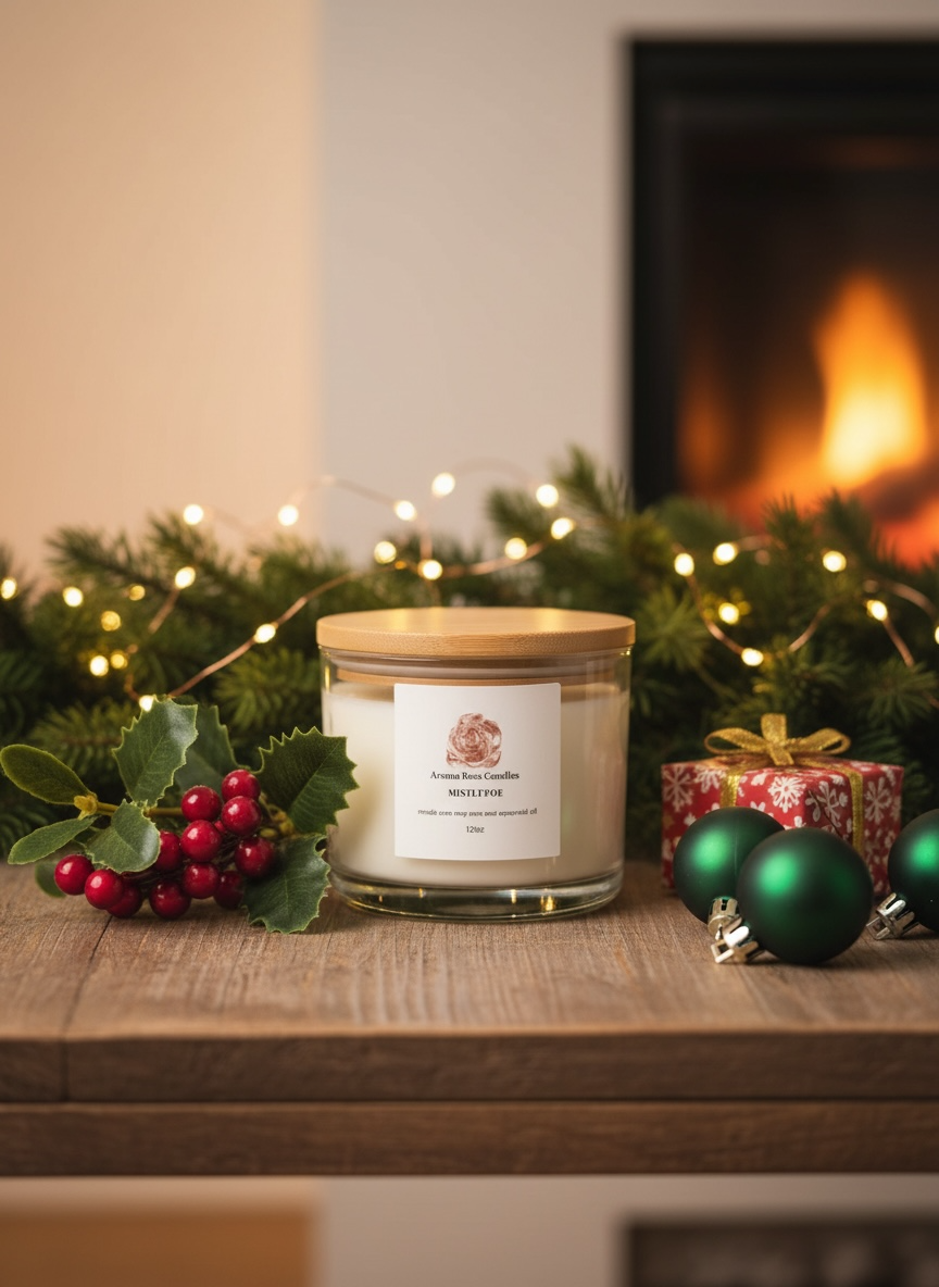 This comforting seasonal fragrance blends fresh evergreen, frost-kissed berries, and a whisper of cool winter air to capture the feeling of standing beneath mistletoe on a snowy evening.