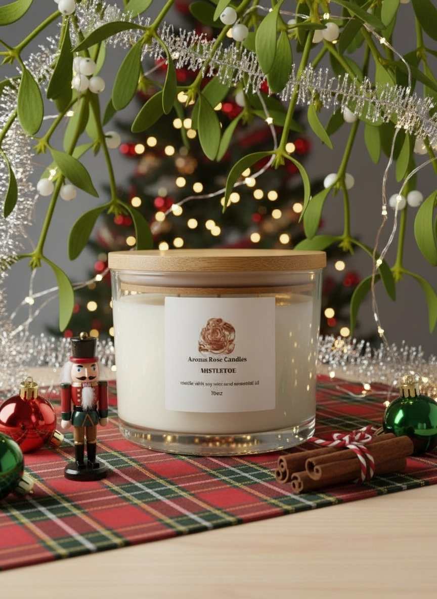 Hints of cedarwood and white pine add natural warmth, while subtle herbal notes create a crisp, uplifting finish. Hand-poured with a clean-burning soy wax blend and a cotton wick, it glows softly—inviting calm, nostalgia, and a touch of holiday romance into any room.
